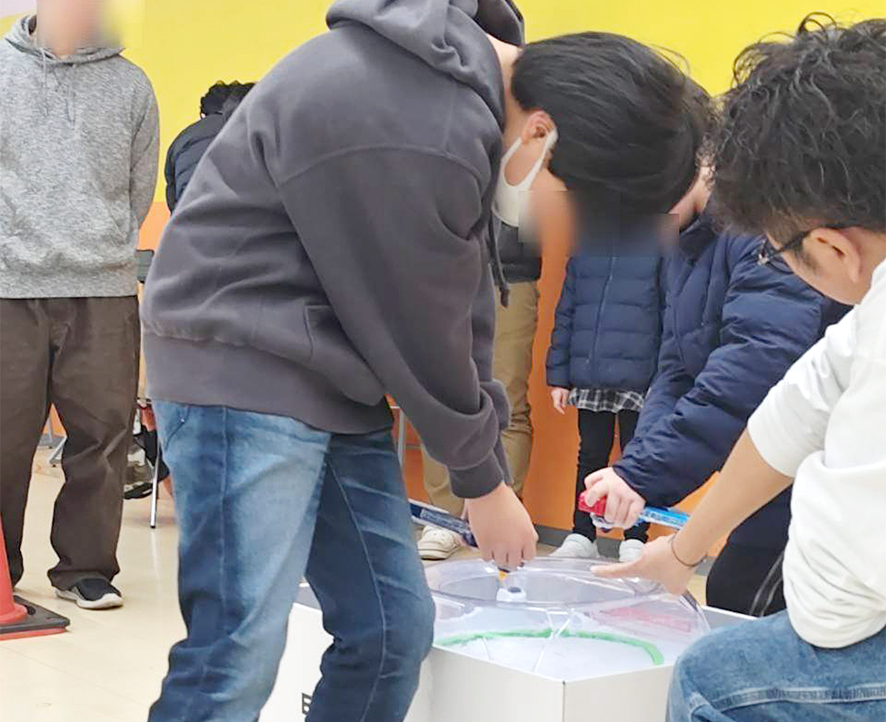 こちらの会場はいつもと違い広々としているので、寒さ対策のためエアコンで事前に部屋を暖めていたのですが、来場した子供たちには暑すぎた様で調整をちょっとミスってしまいましたね、顔を赤くしてた子たちゴメンナサイ!