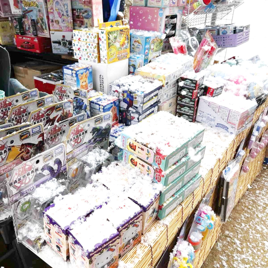 (台の上にはうっすら雪が積もり、景品の上にも雪が積もり、払っても払っても積ってしまい、ちょっぴり迷惑もお掛けしましたがこれも良い思い出です